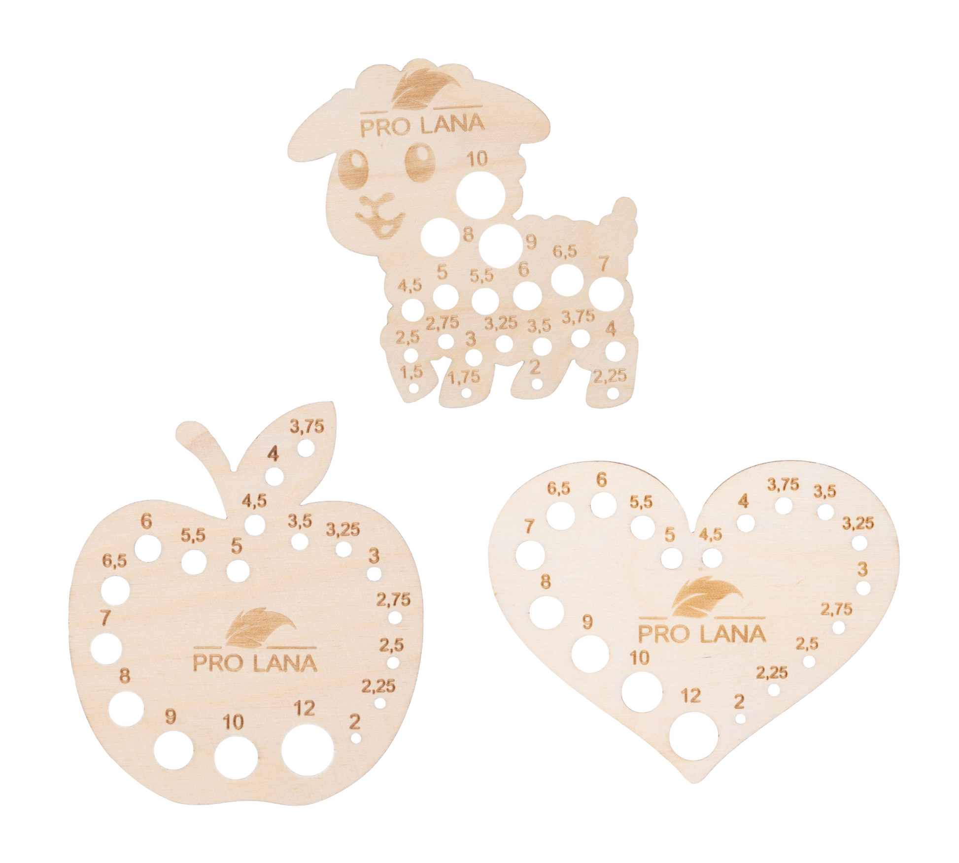 Pro Lana Nadelmaß aus Holz – Apfel, Herz & Schaf